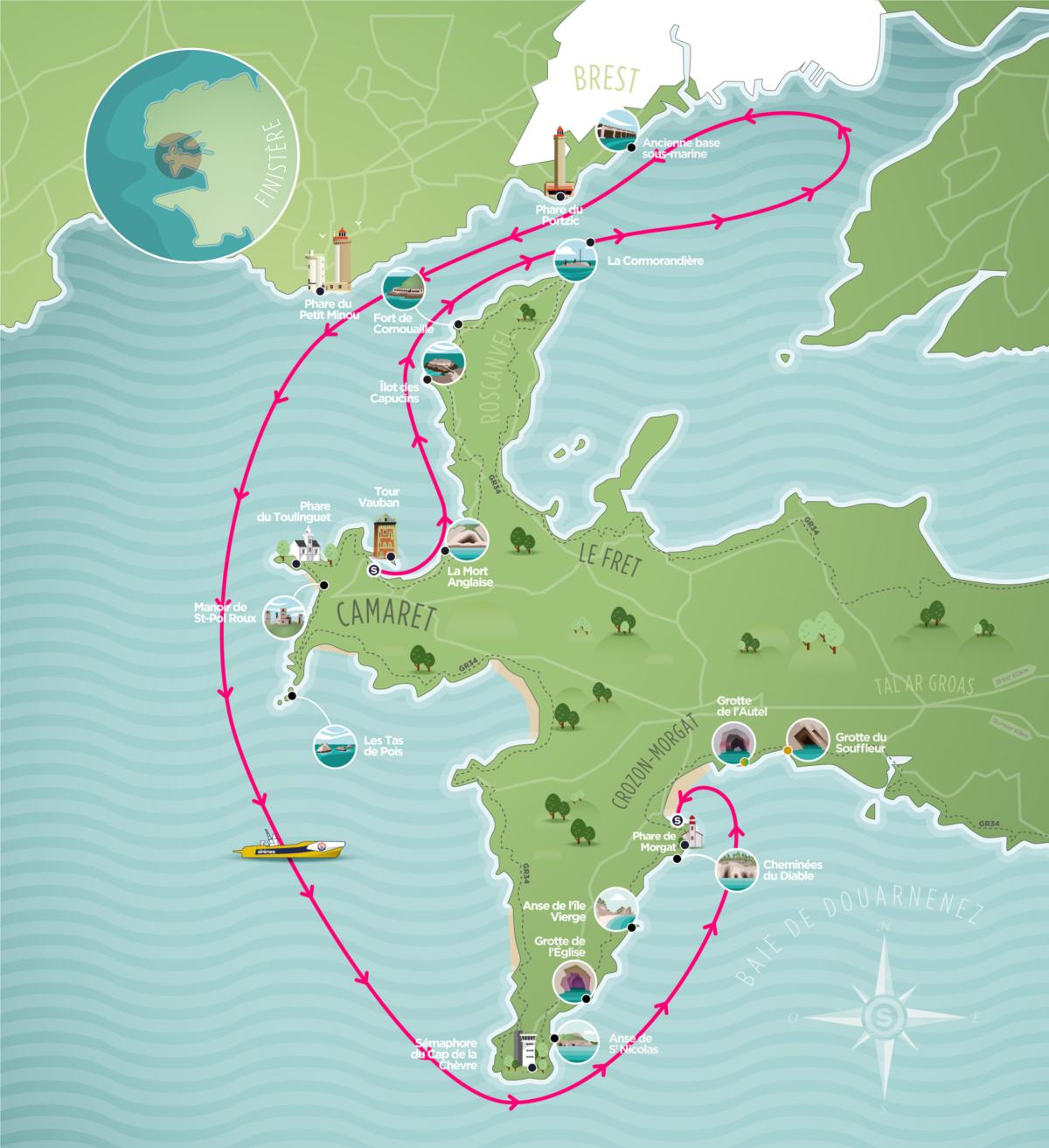 Le départ se fait à Camaret-sur-Mer et l'arrivée à Morgat.