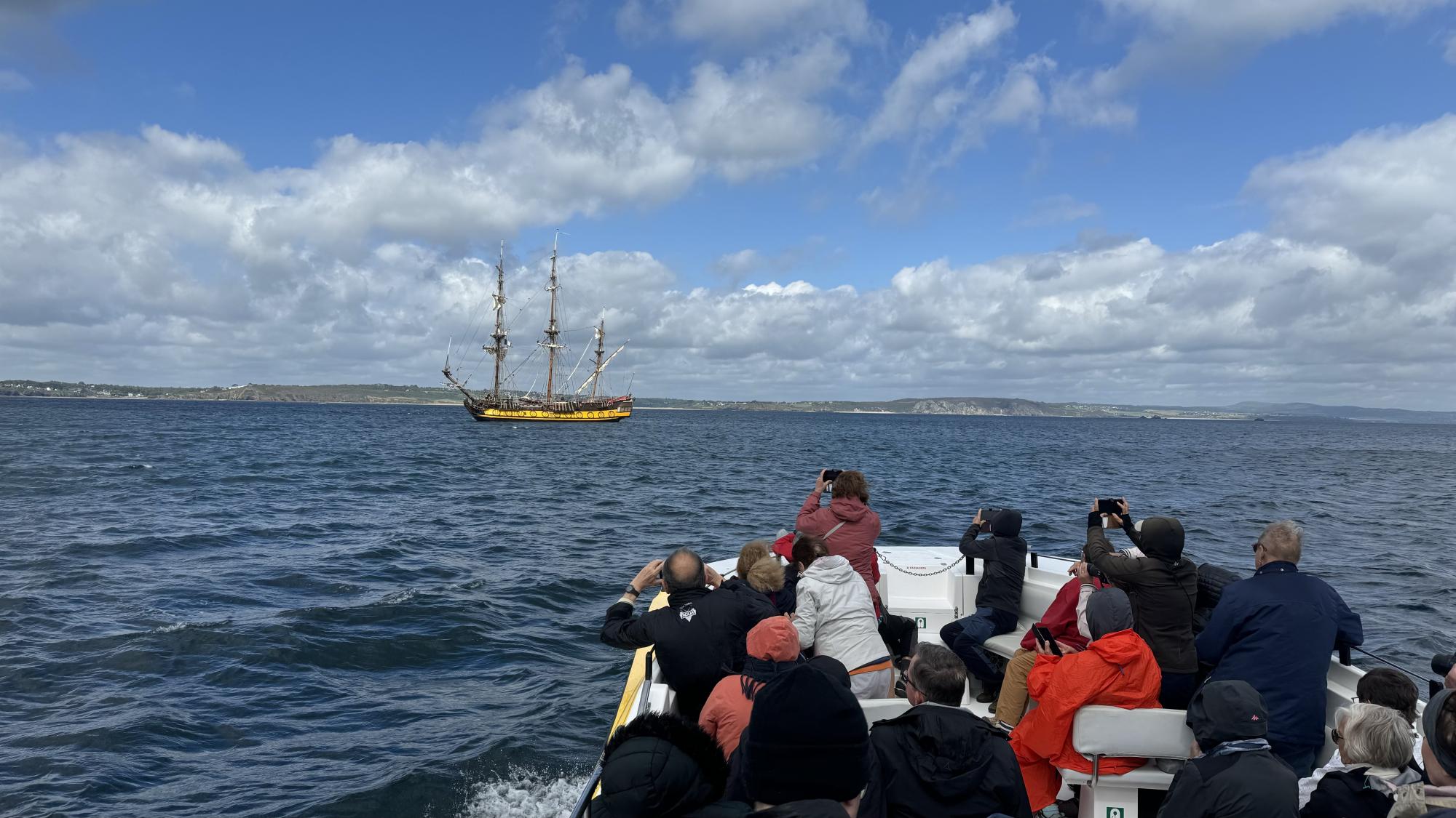 Le 18 juillet, départ de Camaret/Mer à 9h00 pour naviguez jusqu'à Brest et assister au départ spectaculaire de la parade. Naviguez aux côtés de la Parade le long du littoral jusqu'au Cap de la Chèvre, avant de rejoindre le port de Morgat après environ 4 heures de plaisir et de découvertes.